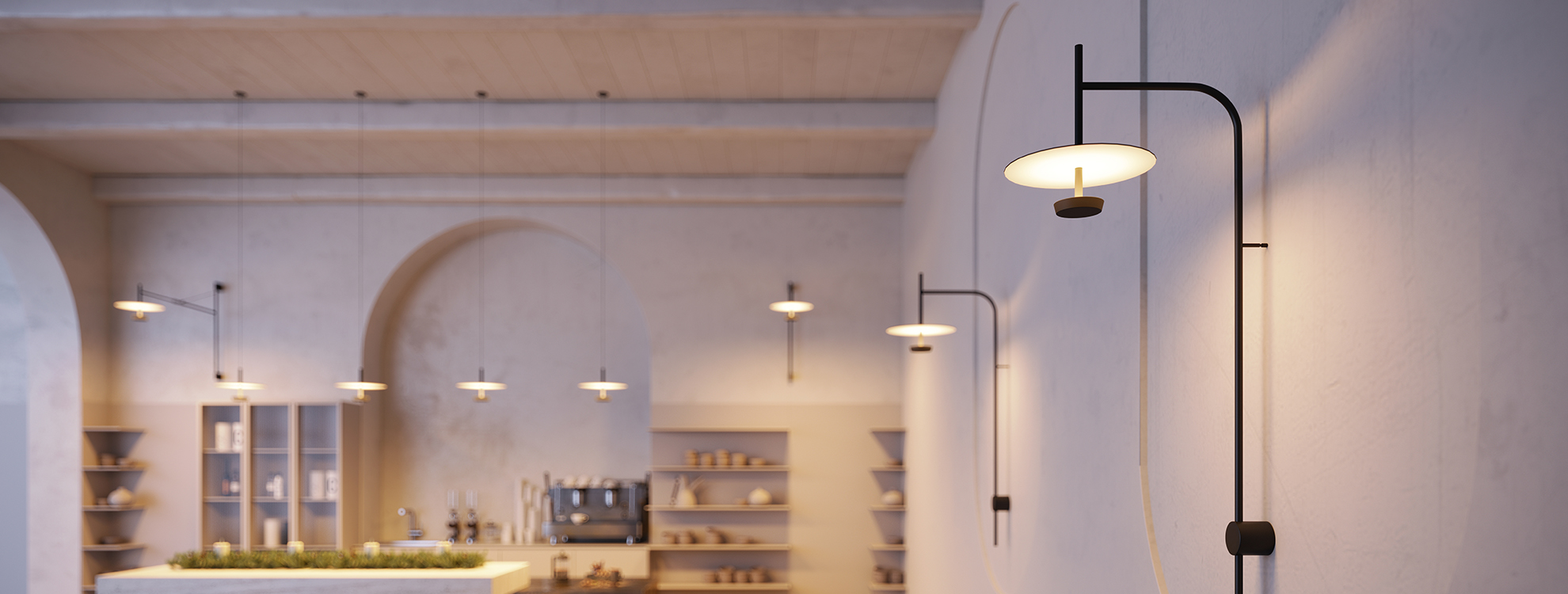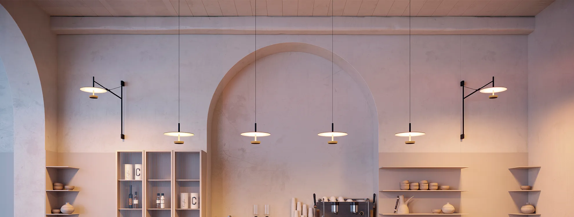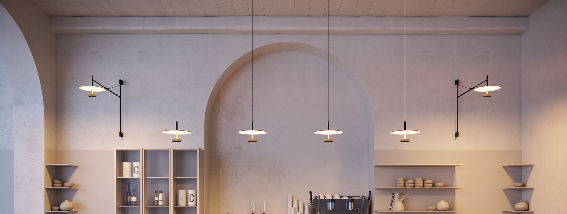Подвесной (с двумя чашами — накладной и встраиваемой). Настенный с телескопической штангой, которая позволяет направлять свет адресно.