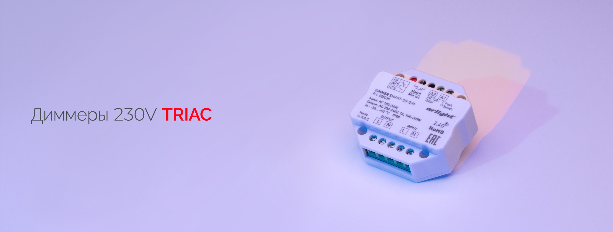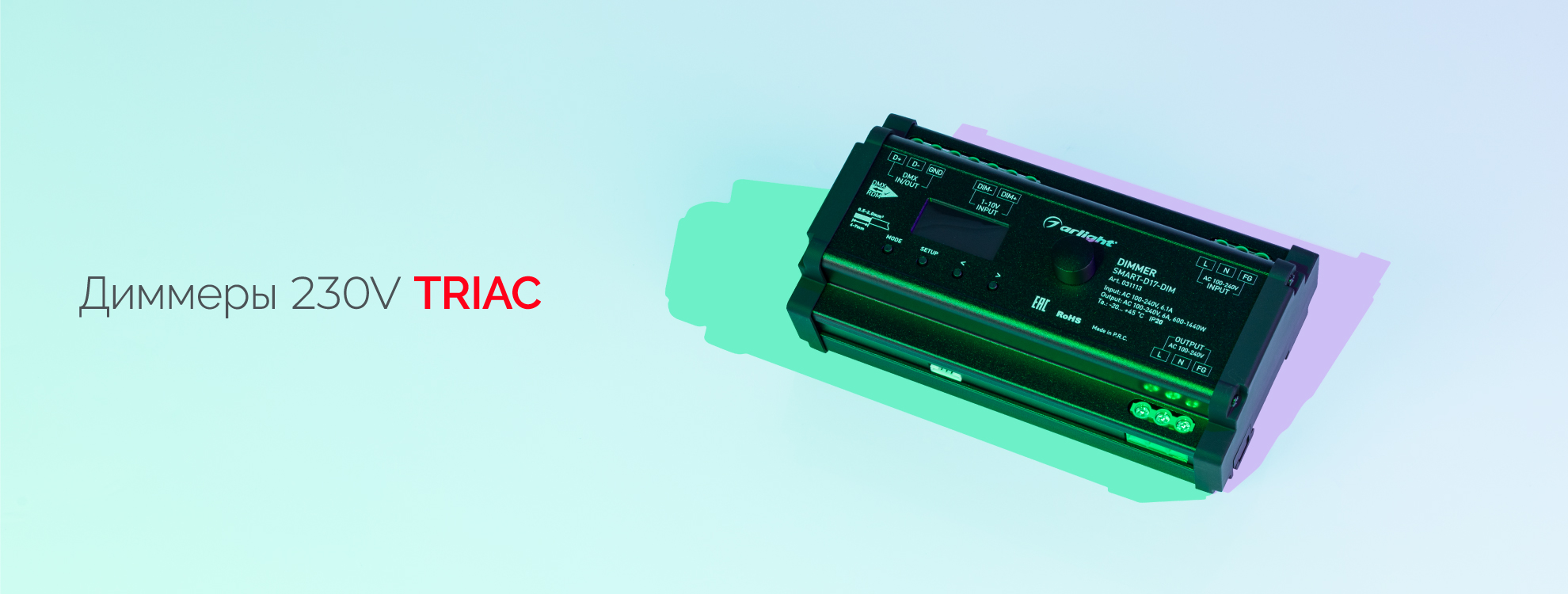Диммеры TRIAC предназначены для включения, выключения и управления яркостью источников света с напряжением питания 230 В, таких как светодиодные диммируемые лампы, диммируемые светодиодные светильники, лампы накаливания и галогенные лампы.