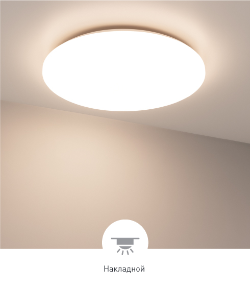 Стильный дизайн Современный минималистичный светильник белого цвета мощностью 50 Вт и диаметром 570 мм. Индекс цветопередачи CRI>90 обеспечивает естественную передачу оттенков интерьера. Степень пылевлагозащиты IP20. Гарантийный срок — 3 года.