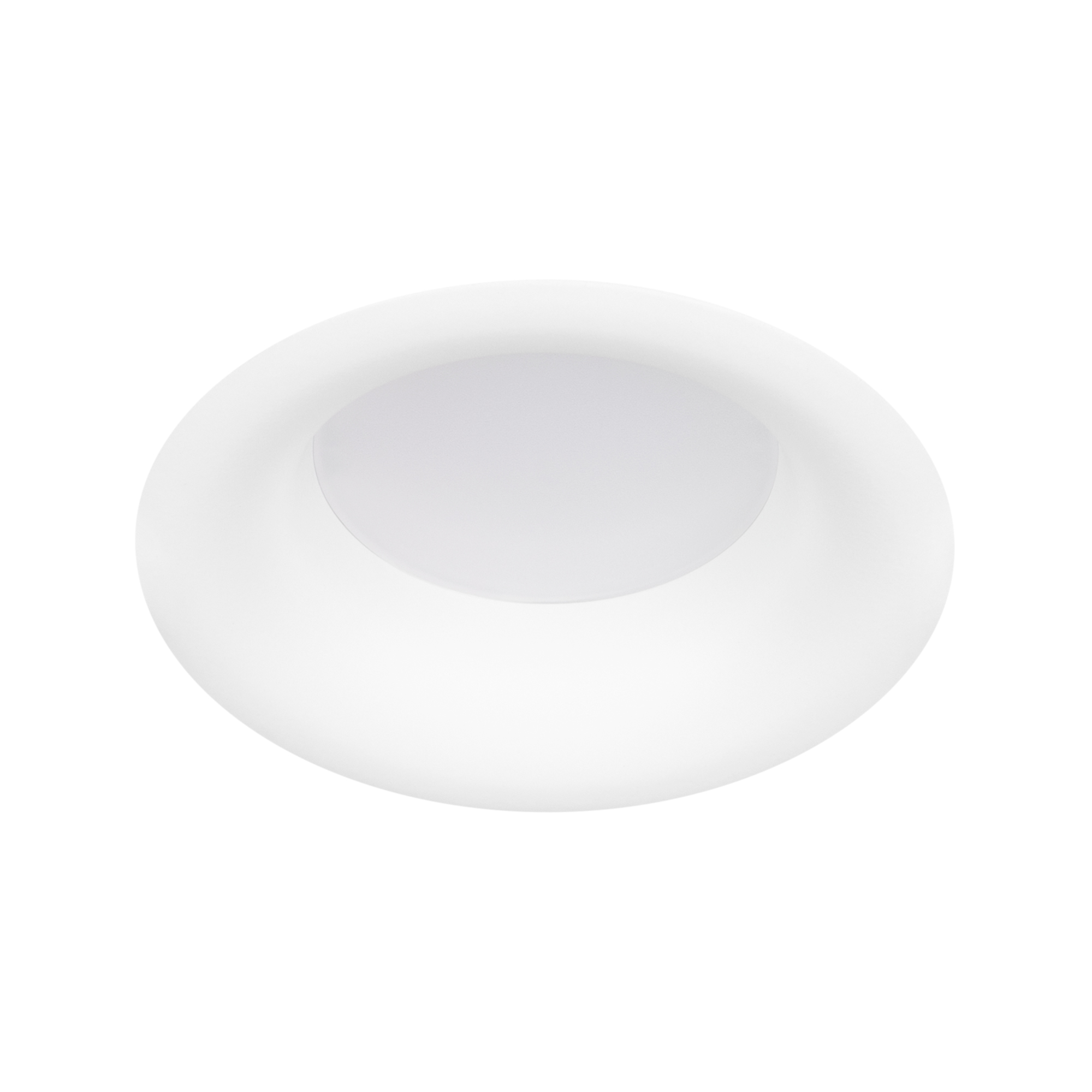 Встраиваемый светильник даунлайт с интегрированным в корпус драйвером. Мощность 7.6 Вт, св. поток 610 лм, 80 лм/Вт, тёплый 3000 K, CRI>90, угол 100°, напряжение питания 230 В. Белый круглый корпус из алюминия, степень защиты IP20. Размер: диаметр 102 мм, высота 63 мм. Монтаж встраиваемый, установочное отверстие: диаметр 90 мм. Пульсация <3%.