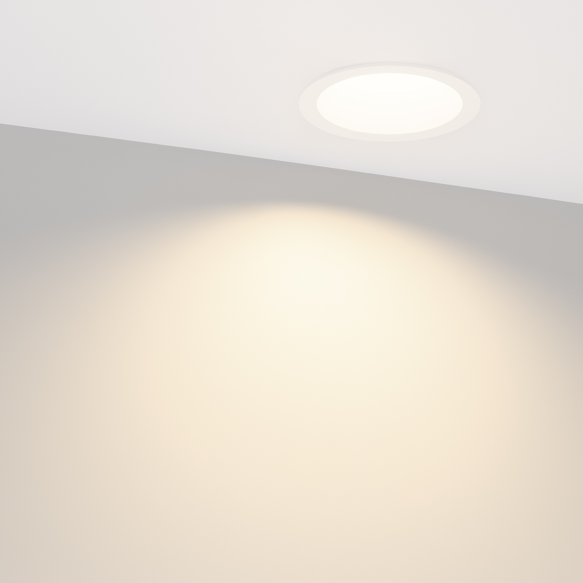 Встраиваемый круглый светильник с индексом CRI>90 обеспечивает точную передачу цветовых оттенков. Алюминиевый корпус белого цвета с утопленным светодиодным модулем является интересным дизайнерским решением, создавая эффект света из ниоткуда. Особая конфигурация корпуса позволяет эффективно отводить тепло и продлевает срок службы светодиодов, а также делает освещение равномерным, комфортным для глаз, без мерцания и видимости точек светодиодов. Светильник с широким углом излучения 85 градусов и эффективностью 90 лм/Вт обеспечивает качественное освещение с высокой светоотдачей. Легко устанавливается с помощью пружин в монтажное отверстие. Драйвер IP54, в комплекте позволяет быстро подключать светильник напрямую к сети переменного тока 230 В. Диммирование возможно при замене штатного драйвера. Защита корпуса на уровне IP54 позволяет устанавливать светильник в местах с повышенной влажностью. Предназначен для основного освещения в жилых, коммерческих, торговых помещениях.