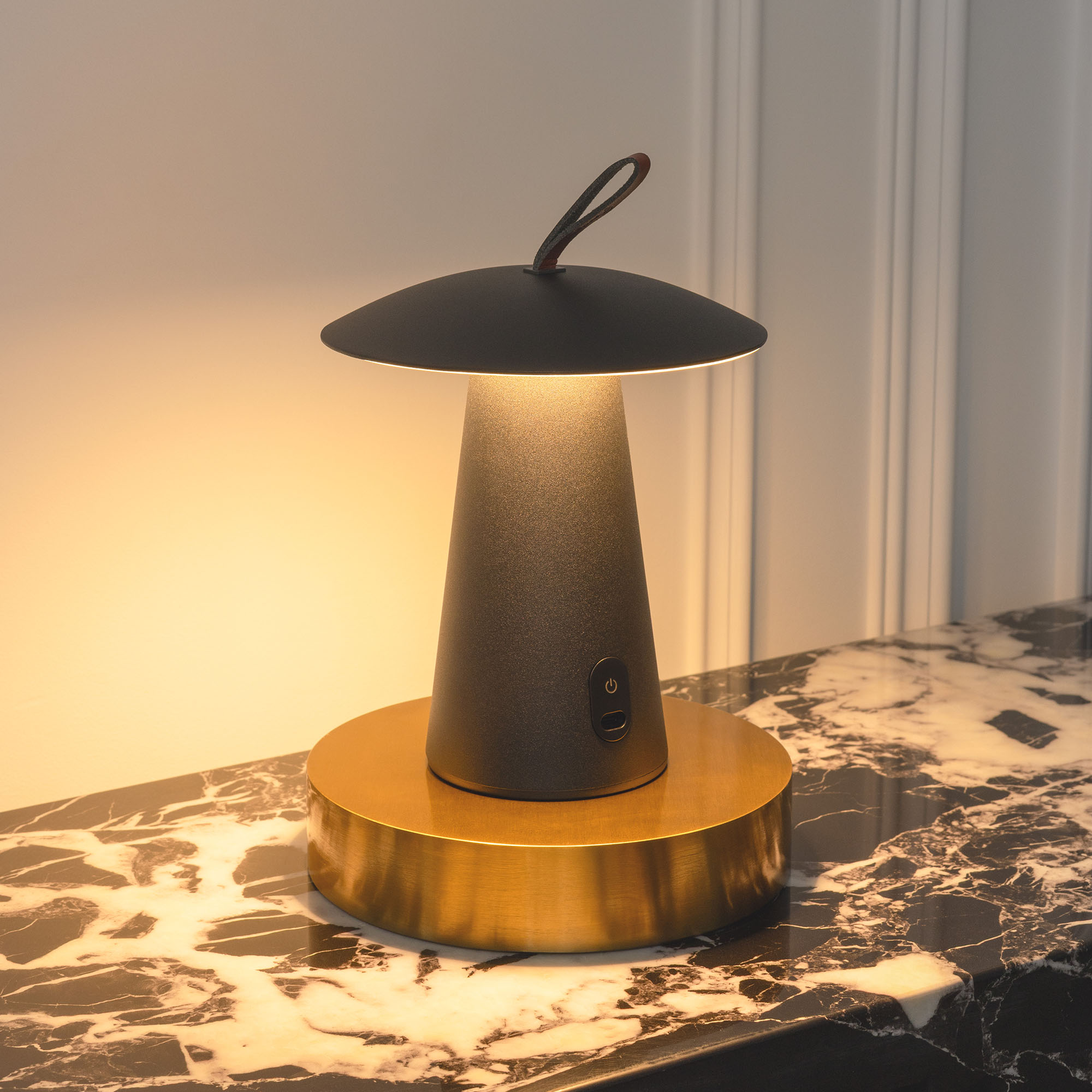 Настольный светильник со встроенным аккумулятором 2Вт, чёрный алюминиевый корпус. Цвет ТЕПЛЫЙ БЕЛЫЙ 3000K, св.поток 260лм, CRI(Ra)>80, угол 127°. Размер Ф197x292мм. IP54. Зарядка от сети переменного тока AC220-240V. Тип встроенного аккумулятора 4400мАч Li-ion, напряжение батареи 3.7V