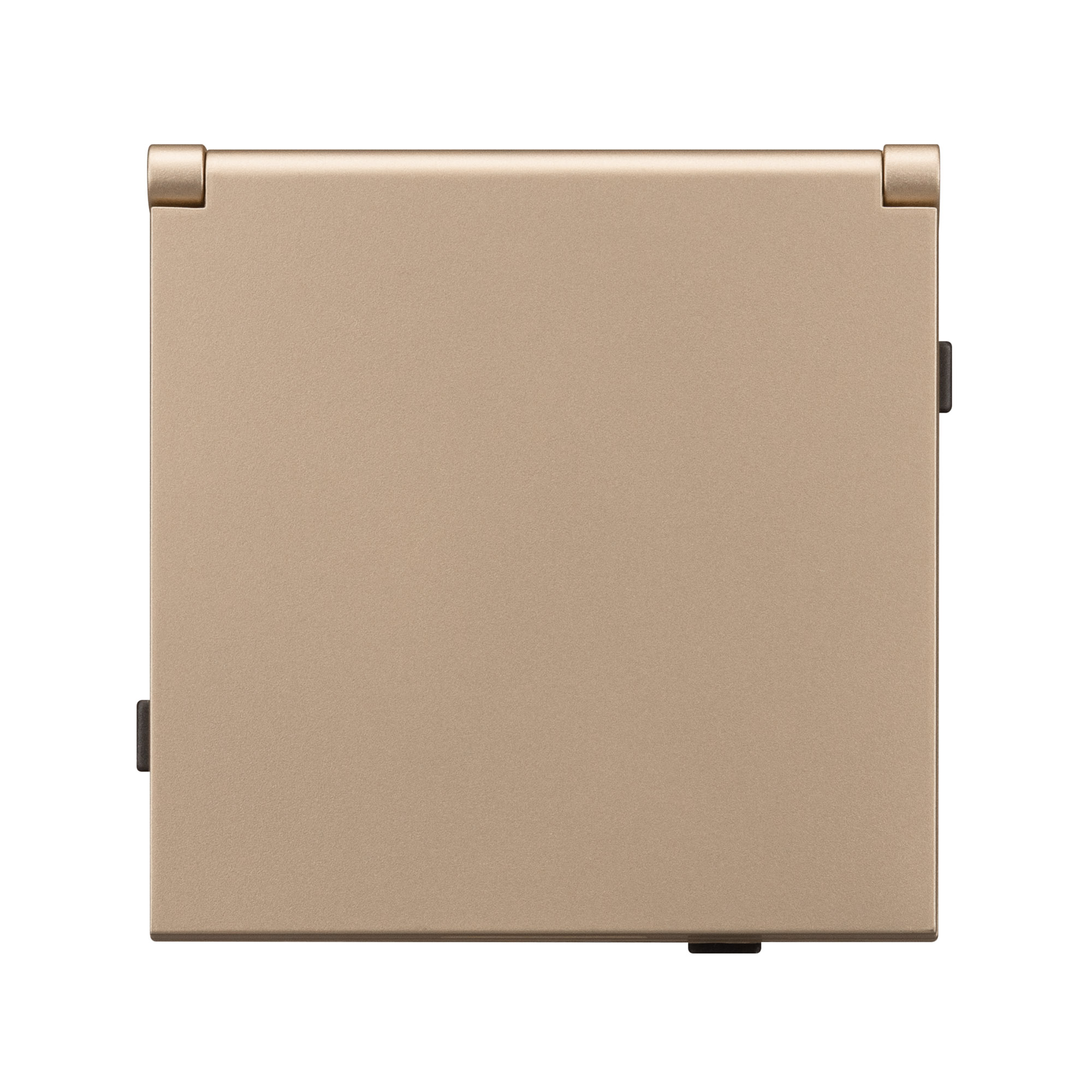 Механизм розетки с заземлением и влагозащитной крышкой на 1 пост. Цвет - золотой. Без фронтальной рамки. Уровень пылевлагозащиты IP44. Розетка устанавливается в стандартный подрозетник круглого сечения диаметром 60мм. Габаритные размеры: длина 71 мм, ширина 71 мм, высота 52 мм. Гарантийный срок 10 лет.