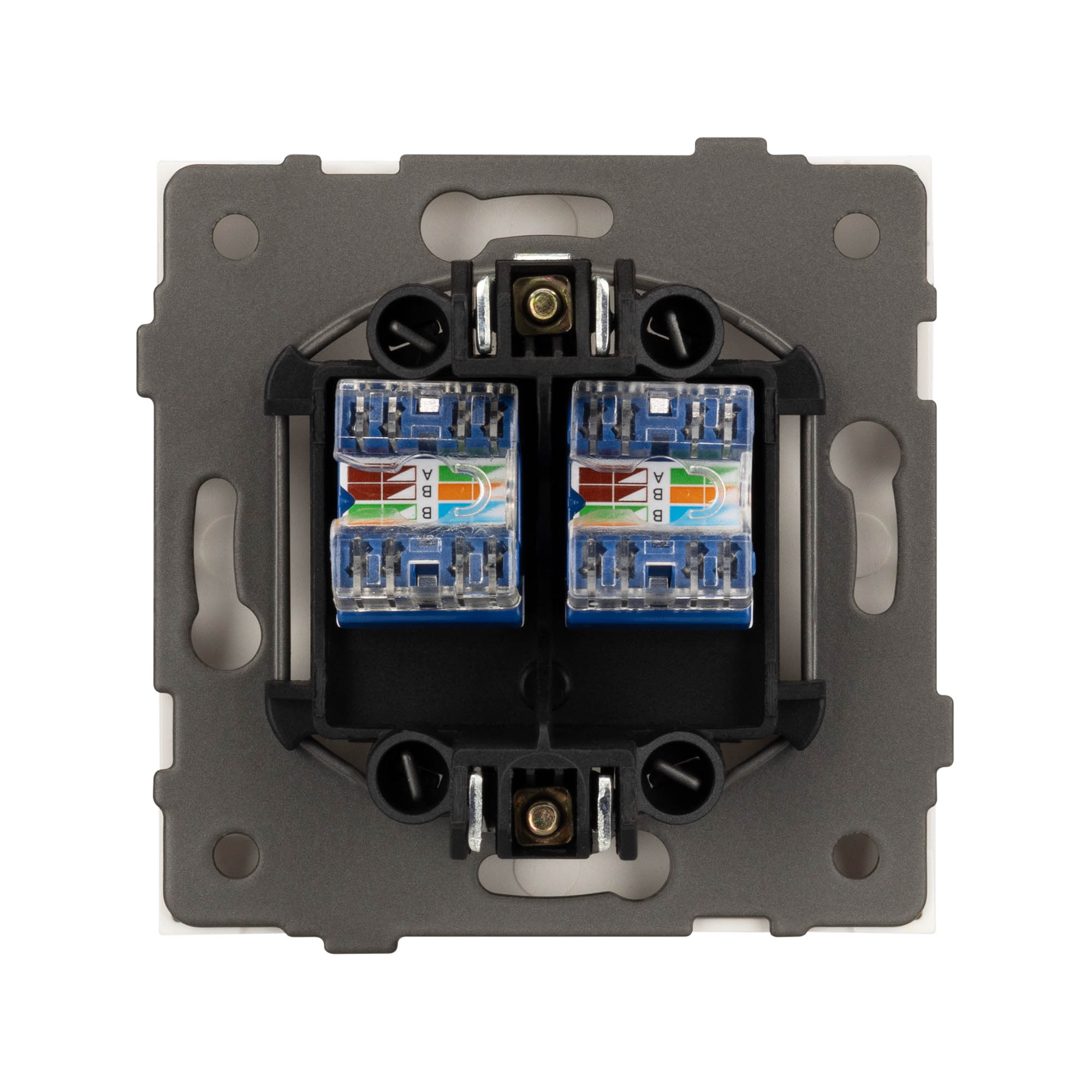 Механизм компьютерной розетки на 2 поста 6-й категории. Цвет - белый. Без фронтальной рамки. Уровень пылевлагозащиты IP20. Розетка устанавливается в стандартный подрозетник круглого сечения диаметром 60мм. Габаритные размеры: длина 71 мм, ширина 71 мм, высота 42 мм. Гарантийный срок 10 лет.