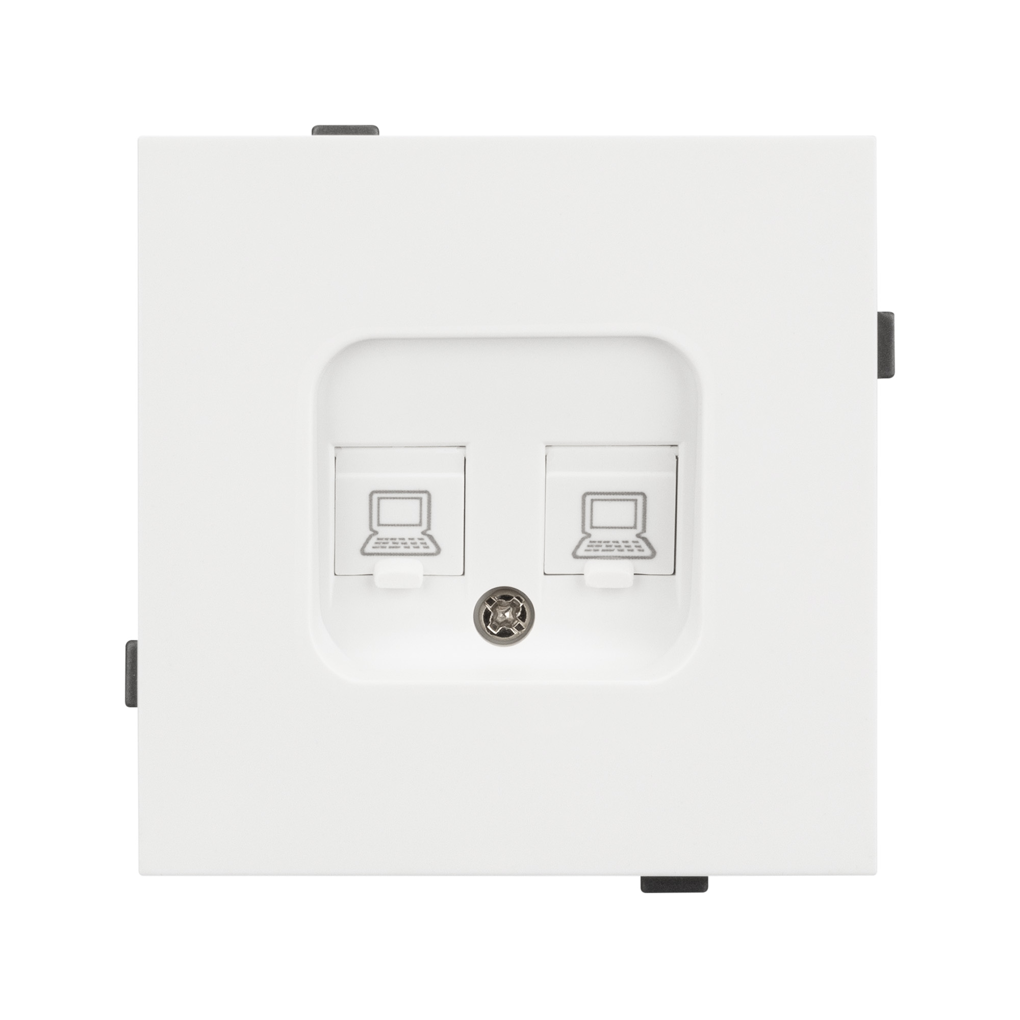 Механизм компьютерной розетки на 2 поста 6-й категории. Цвет - белый, с Soft-Touch покрытием. Без фронтальной рамки. Уровень пылевлагозащиты IP20. Розетка устанавливается в стандартный подрозетник круглого сечения диаметром 60мм. Габаритные размеры: длина 71 мм, ширина 71 мм, высота 42 мм. Гарантийный срок 10 лет.