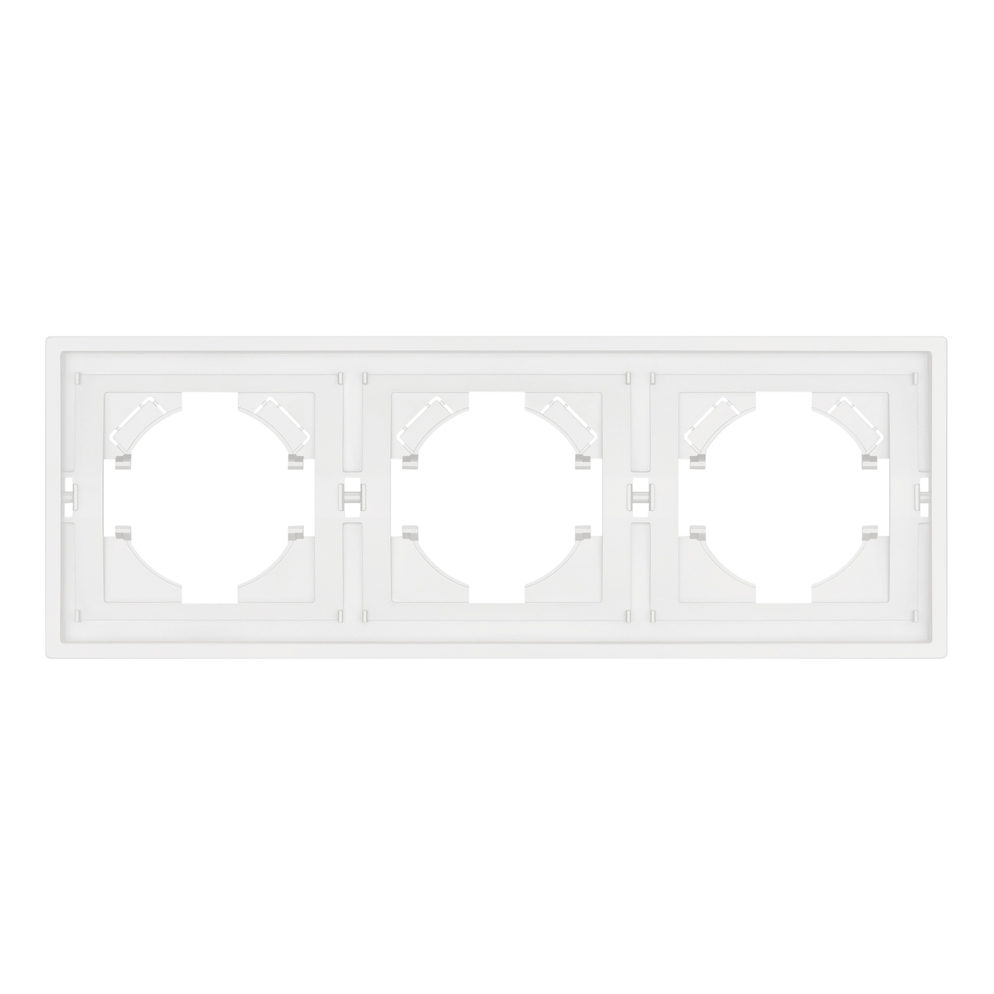 Рамка пластиковая на 3 поста, под встраиваемый механизм. Цвет - белый, с Soft-Touch покрытием. Среднего уровня герметичности IP20. Ориентация монтажа горизонтальная. Габаритные размеры: длина 221 мм, ширина 80 мм, высота 9 мм. Гарантийный срок 12 мес.