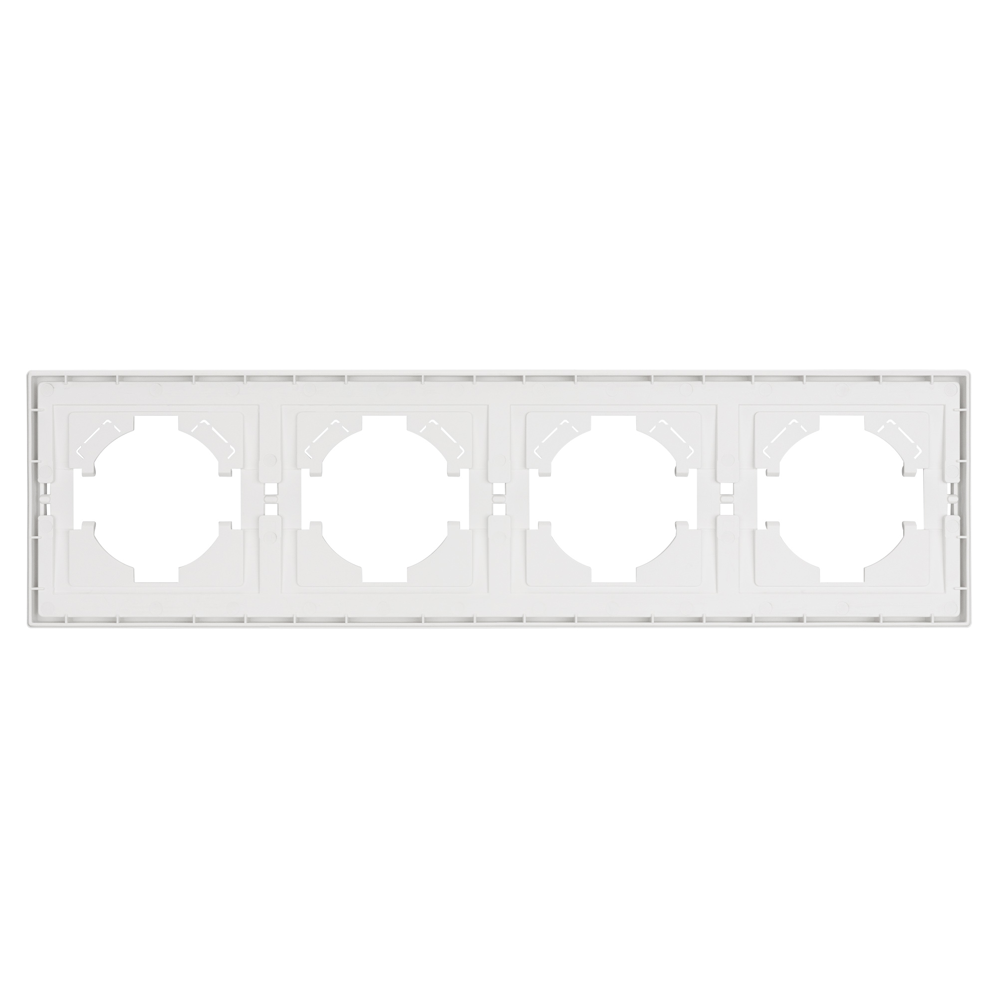 Рамка пластиковая на 4 поста, под встраиваемый механизм. Цвет - белый, с Soft-Touch покрытием. Среднего уровня герметичности IP20. Ориентация монтажа горизонтальная.