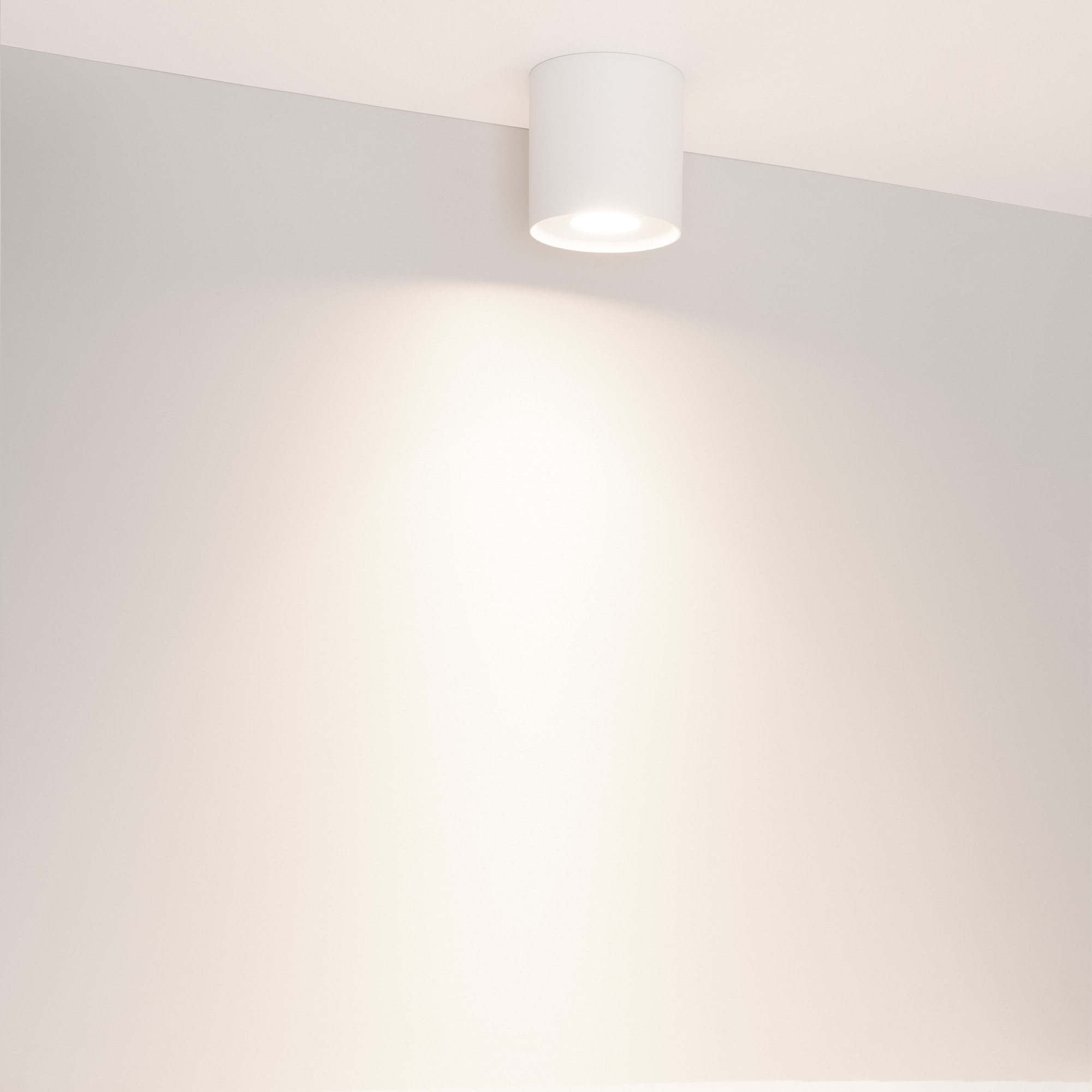 Накладной интерьерный светильник c регулируемым углом излучения. Мощность 10 Вт, св. поток 820-850 лм, 82 лм/Вт, дневной 4000 K, CRI>90, угол 20°-45°, напряжение питания 230 В. Белый круглый корпус, угол поворота светового модуля 60° (30°+30°), степень защиты IP20. Размер: диаметр 95 мм, высота 98 мм. Монтаж накладной. Драйвер встроенный 27-48 В, 250 мА, пульсация < 0,3 %.