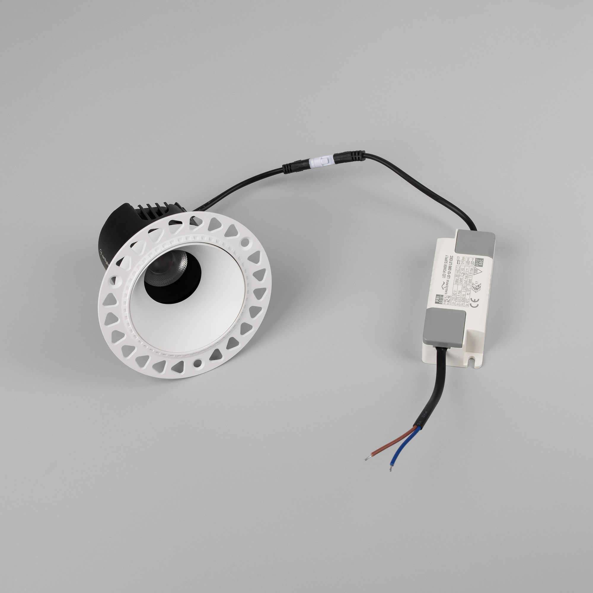 Встраиваемый светильник даунлайт. Мощность 12 Вт, св. поток 905 лм, 75 лм/Вт, теплый 3000 K, CRI>92, угол 24°, напряжение питания 230 В. Белый круглый корпус из алюминия, белый матовый отражатель, степень защиты IP20 . Размер: диаметр 105 мм, высота 87 мм. Монтаж встраиваемый, установочное отверстие: диаметр 75 мм. Драйвер 27-42 В, 280 мА, пульсация <0,5%.