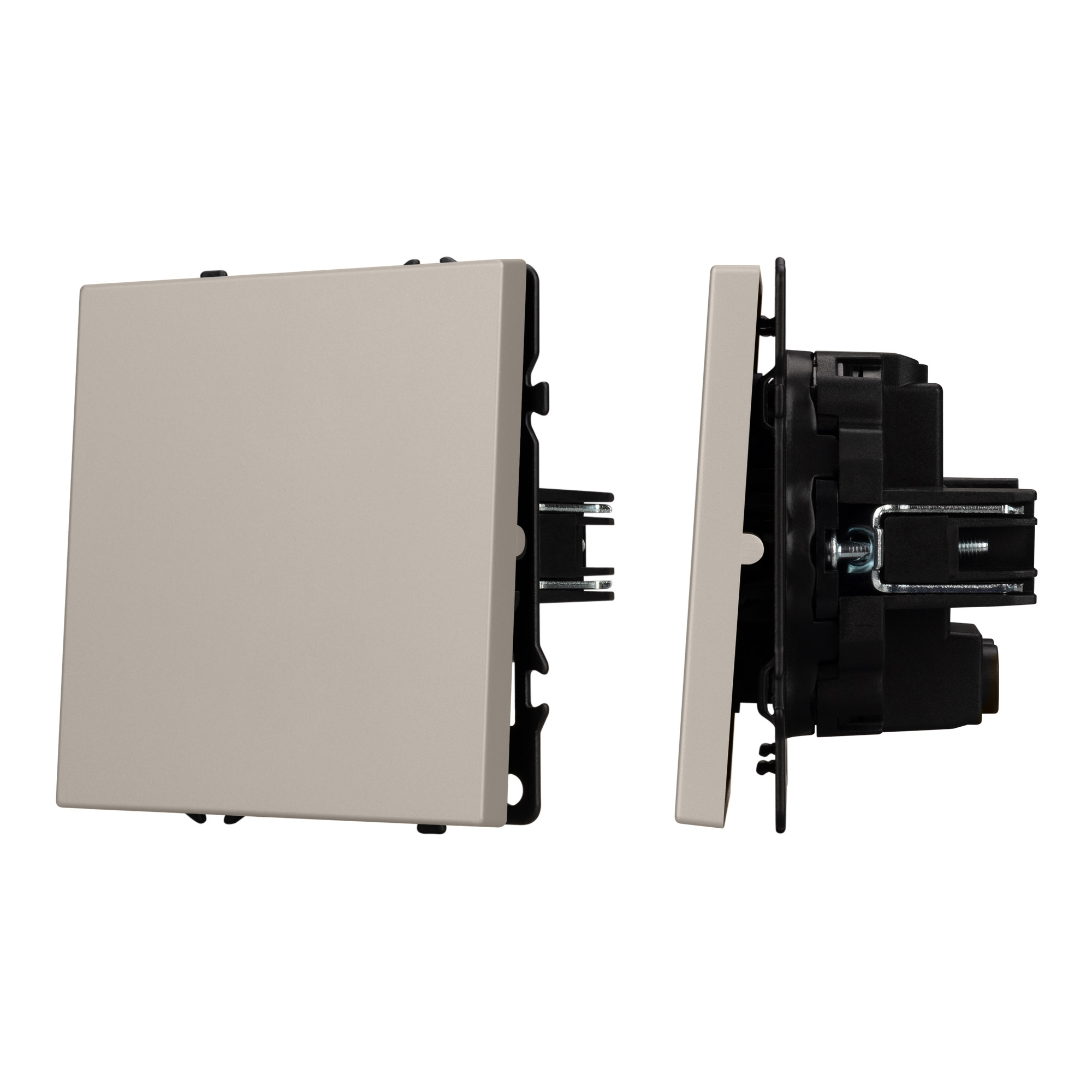 Строгие геометрические линии гармонично сочетаются с функциональностью продуманных механизмов, создавая идеальное решение для дизайн-проектов, где важны как эстетика, так и практичность. Механизм выключателя света совместим с рамками серии NOBE, создает утонченный минималистичный вид. Скрытый тип монтажа позволяет гармонично встроить в интерьер любого современного дизайн-проекта. Видимая часть механизма выполнена из высококачественного пластика цвета кашемир и имеет Soft-Touch покрытие, что придает изделию приятные тактильные ощущения и стильный внешний вид. Контактная часть присоединяется при помощи винтовых зажимов, позволяя быстро и легко подсоединить механизм выключателя к питающим элементам. А усиленные распорные лапки двойного захвата надежно фиксируют механизм в установочном подрозетнике круглого сечения диаметром 60мм. Суппорт окрашен в черный матовый цвет под основу механизма и выполнен из металла толщиной 1,5мм, что обеспечивает безопасность и уверенность в установке. На каждой стороне суппорта размещены фиксирующие элементы, позволяющие комбинировать механизмы в системы до 5 шт как горизонтально, так и вертикально.