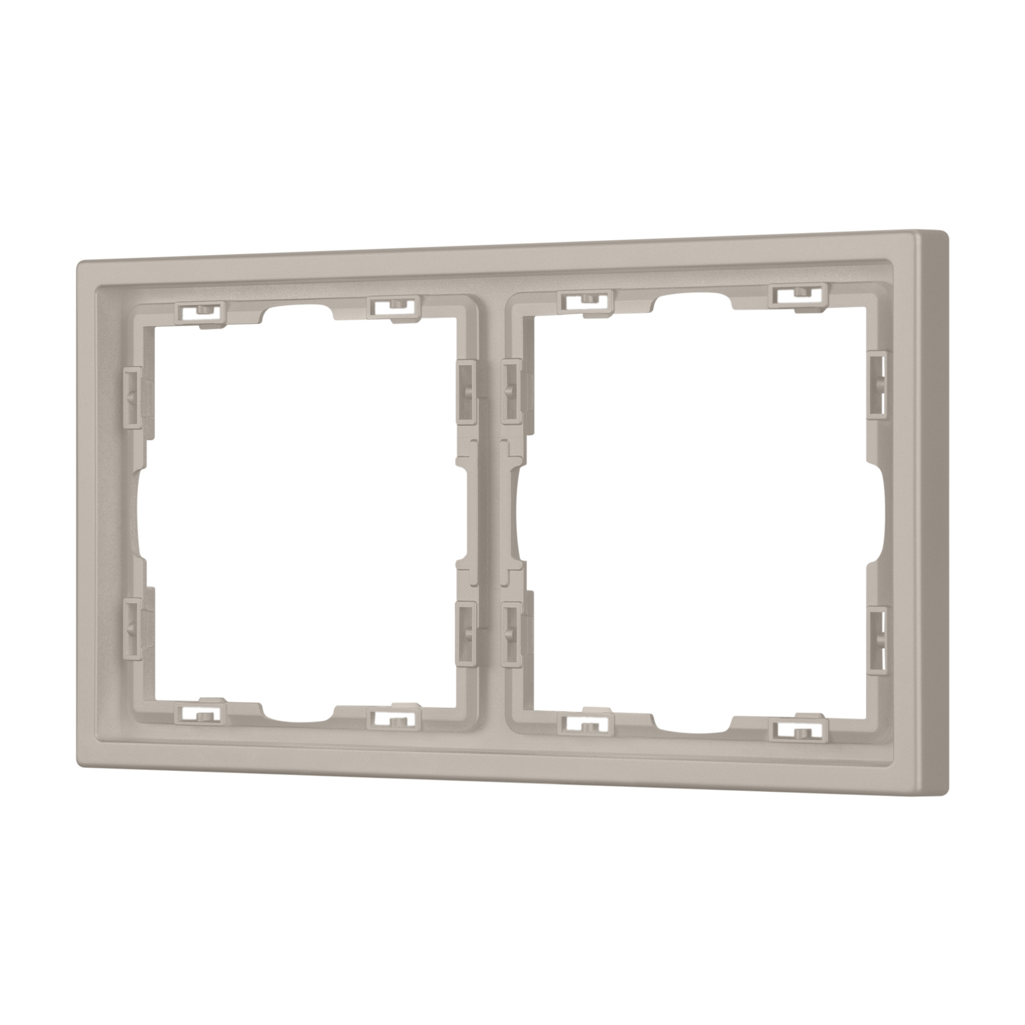 Рамка пластиковая на 2 поста, под встраиваемый механизм. Цвет - кашемир, с Soft-Touch поверхностью. Среднего уровня герметичности IP20. Ориентация монтажа горизонтальная. Габаритные размеры: длина 152 мм, ширина 81 мм, высота 8.55 мм. Гарантийный срок 12 мес.