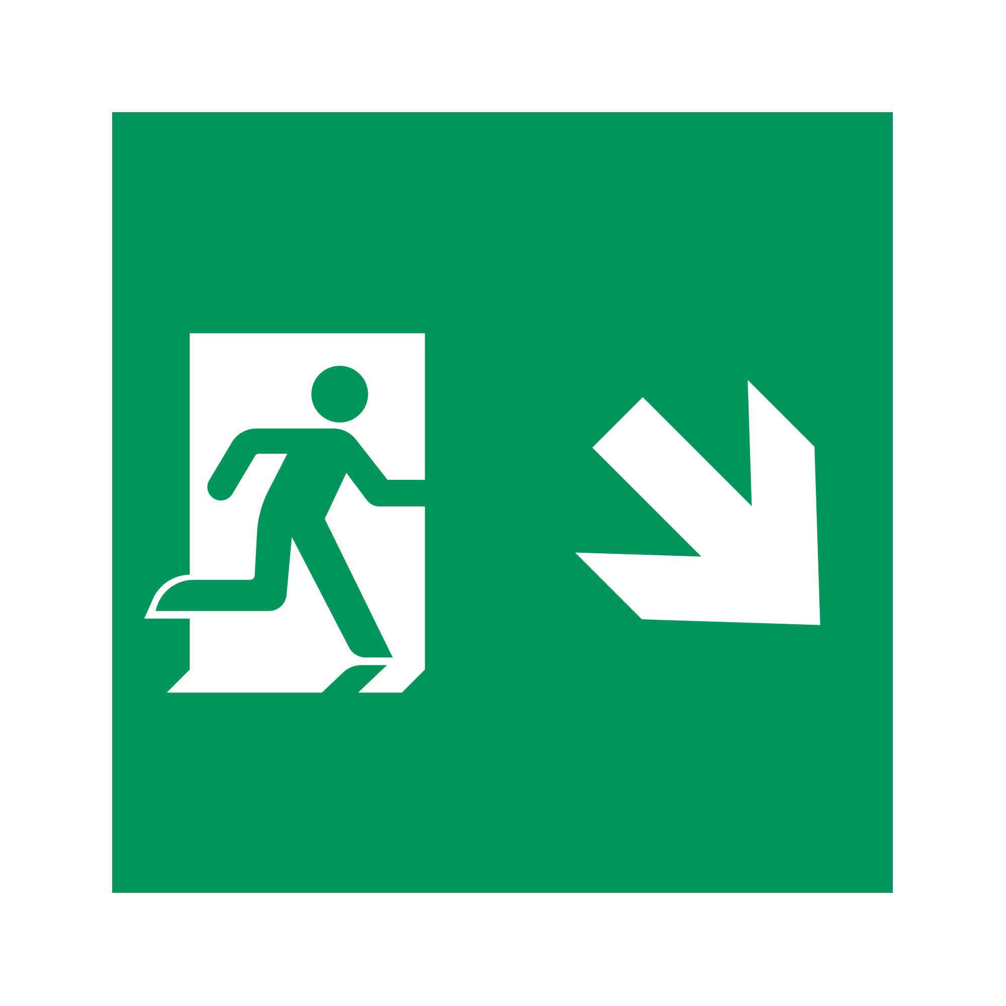 Пиктограмма "человек, стрелка вниз-вправо" для аварийных панелей серии EMG-MARK. Выполнена из пластика, вставляется в LGP панель аварийного указателя.