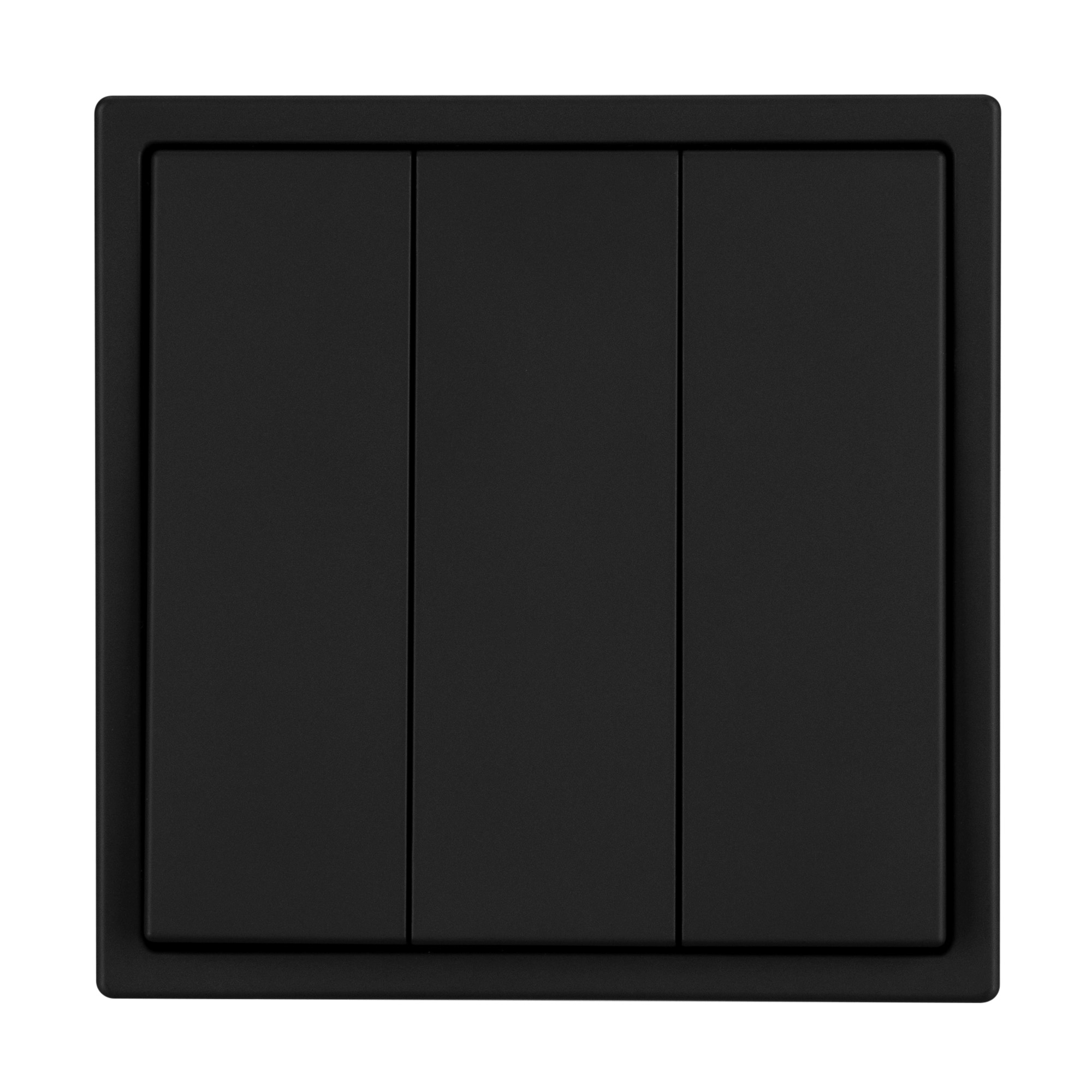 Механизм выключателя света клавишный на 1 пост 3 клавиши (непроходной). Цвет - черный оникс, с Soft-Touch покрытием. Без фронтальной рамки. Уровень пылевлагозащиты IP20. Выключатель устанавливается в стандартный круглый подрозетник круглого сечения диаметром 60мм. Габаритные размеры: длина 71 мм, ширина 71 мм, высота 52 мм. Гарантийный срок 10 лет.