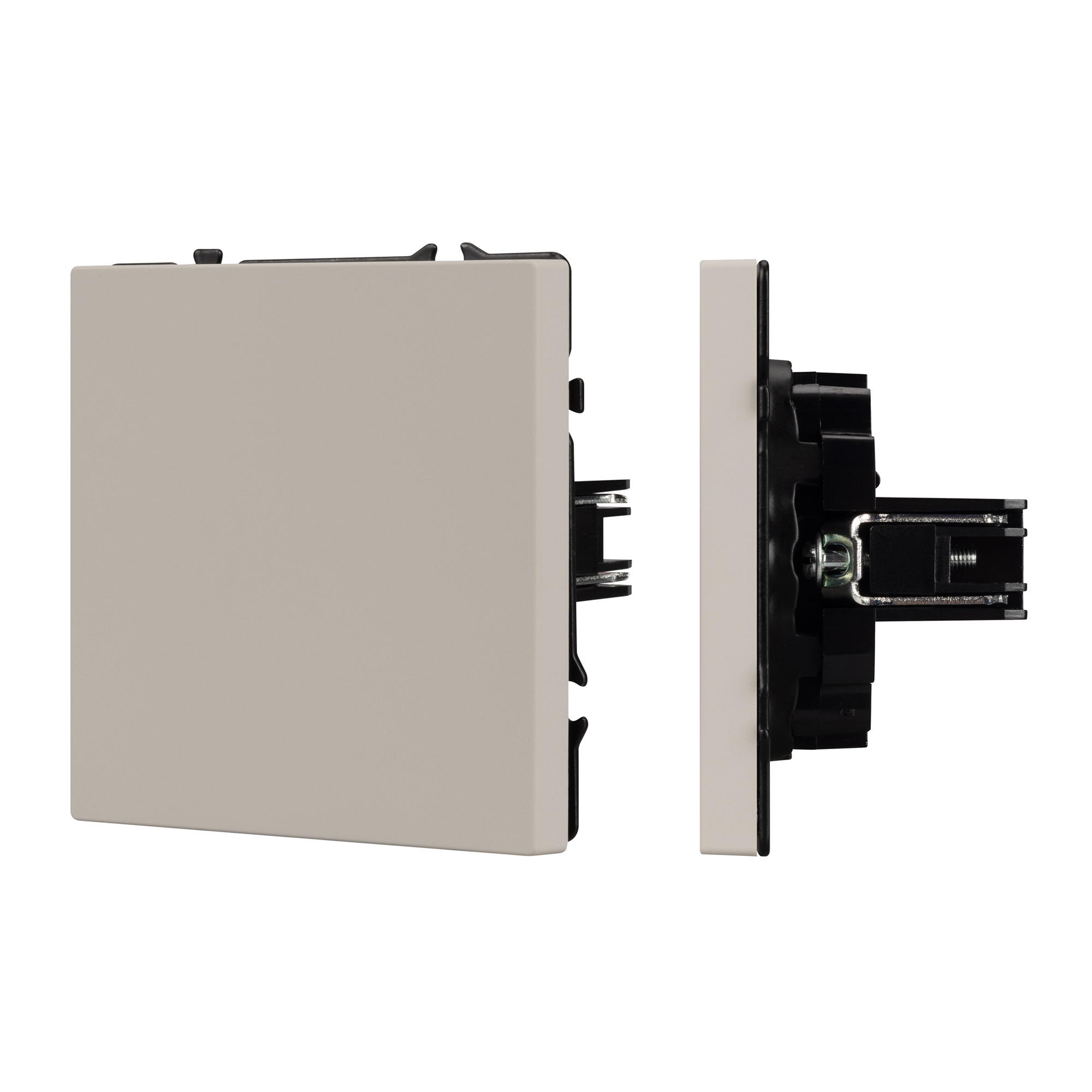 Строгие геометрические линии гармонично сочетаются с функциональностью продуманных механизмов, создавая идеальное решение для дизайн-проектов, где важны как эстетика, так и практичность. Заглушка поста совместима с рамками серии NOBE, создает утонченный минималистичный вид. Скрытый тип монтажа позволяет гармонично встроить в интерьер любого современного дизайн-проекта. Видимая часть выполнена из высококачественного пластика цвета кашемир и имеет Soft-Touch покрытие, что придает изделию приятные тактильные ощущения и стильный внешний вид. Заглушка предназначена для перекрытия поста под дальнейшее размещение механизма, не имеет питающих элементов и выполняет декоративную функцию. Усиленные распорные лапки двойного захвата надежно фиксируют устройство в установочном подрозетнике круглого сечения диаметром 60мм. Суппорт окрашен в черный матовый цвет и выполнен из металла толщиной 1,5мм, что обеспечивает безопасность и уверенность в установке. На каждой стороне суппорта размещены фиксирующие элементы, позволяющие комбинировать механизмы в системы до 5шт как горизонтально, так и вертикально.