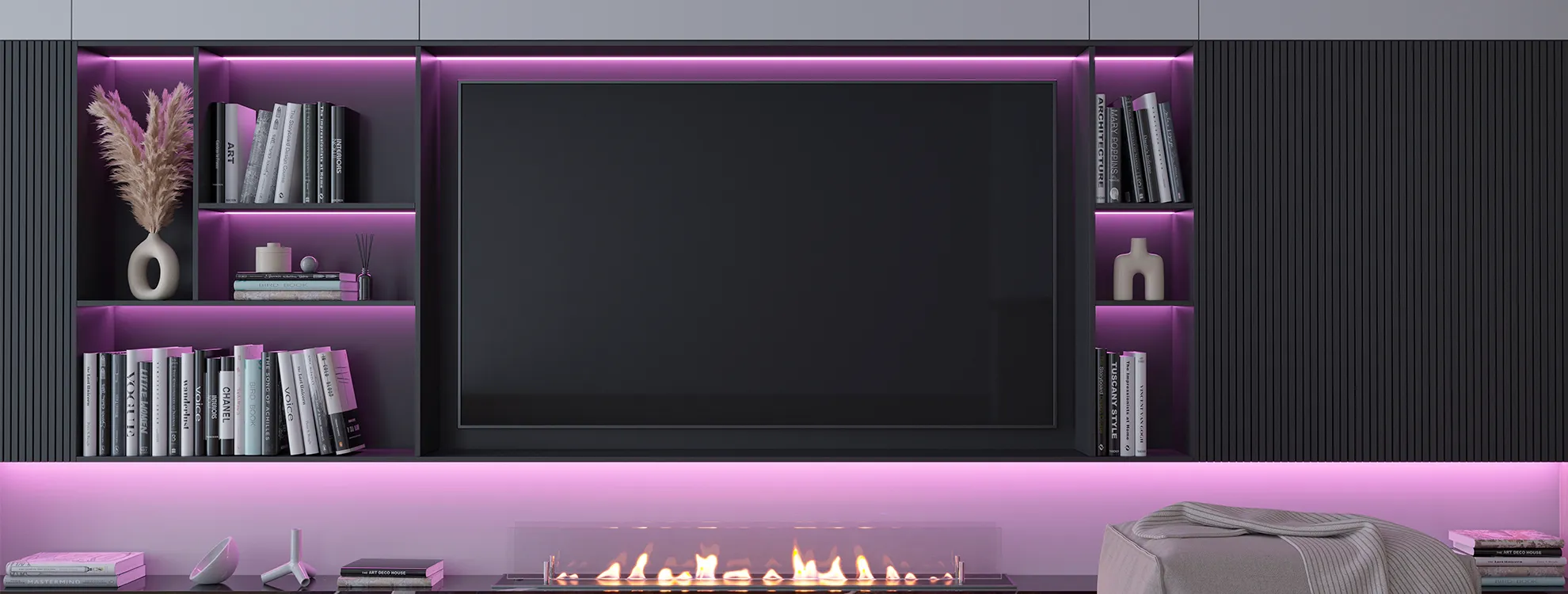 Узкая светодиодная лента RT H96 RGBW — отличный декоративный элемент в интерьере частного дома, офиса, торговой точки, а также школы или больницы. Тонкие световые линии в 5 мм элегантно подчеркивают геометрию пространства подсветкой ниш, а также привлекают внимание, выделяя грани стеклянных полок, мебели или товарных витрин. Пять проводов, четыре канала подключения — регулируйте оттенок освещения с помощью RGBW-контроллера, выбирая между красным, синим, зеленым и белыми цветами.