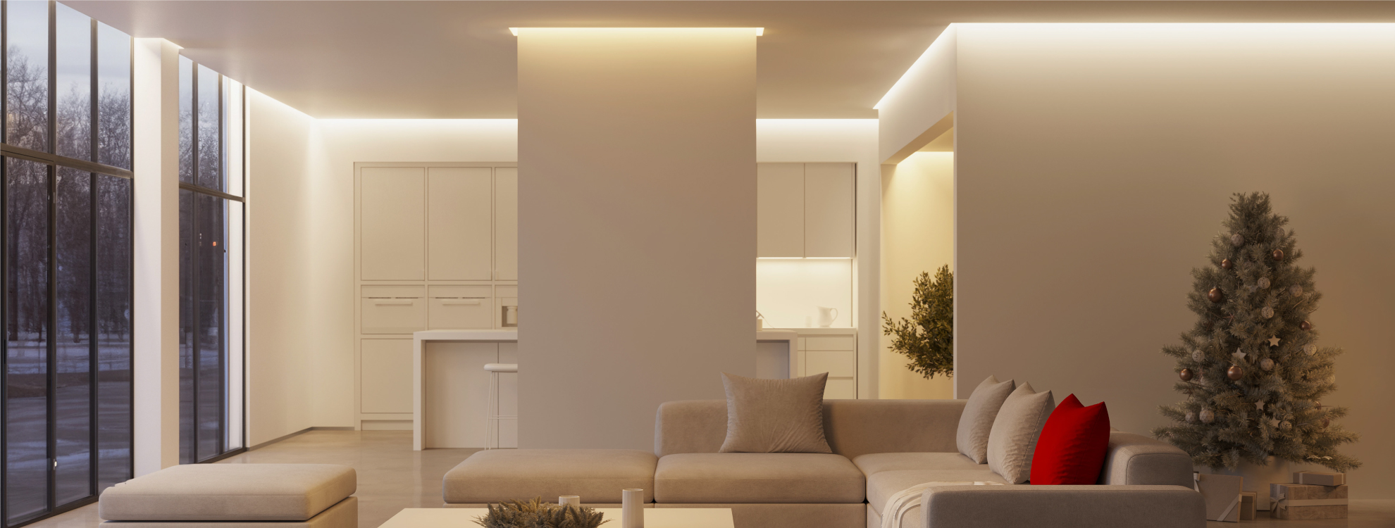 Разные габариты профилей обеспечивают широкий выбор светодиодных лент для воплощения многообразных композиций в интерьере.