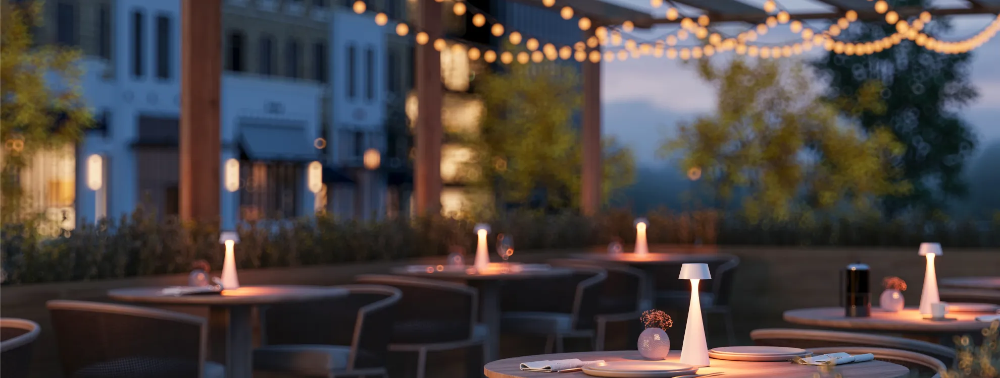Локальное освещение с помощью светильника TOMMY — комфортное рабочее пространство, приятный отдых на открытой веранде или уютная атмосфера вечера в ресторане. Сенсорная кнопка на световом модуле позволяет быстро и легко регулировать яркость и цветовую температуру с шагом 2200–2700–3000 K, а металлический утяжеленный корпус устойчиво удерживает светильник на поверхности.
