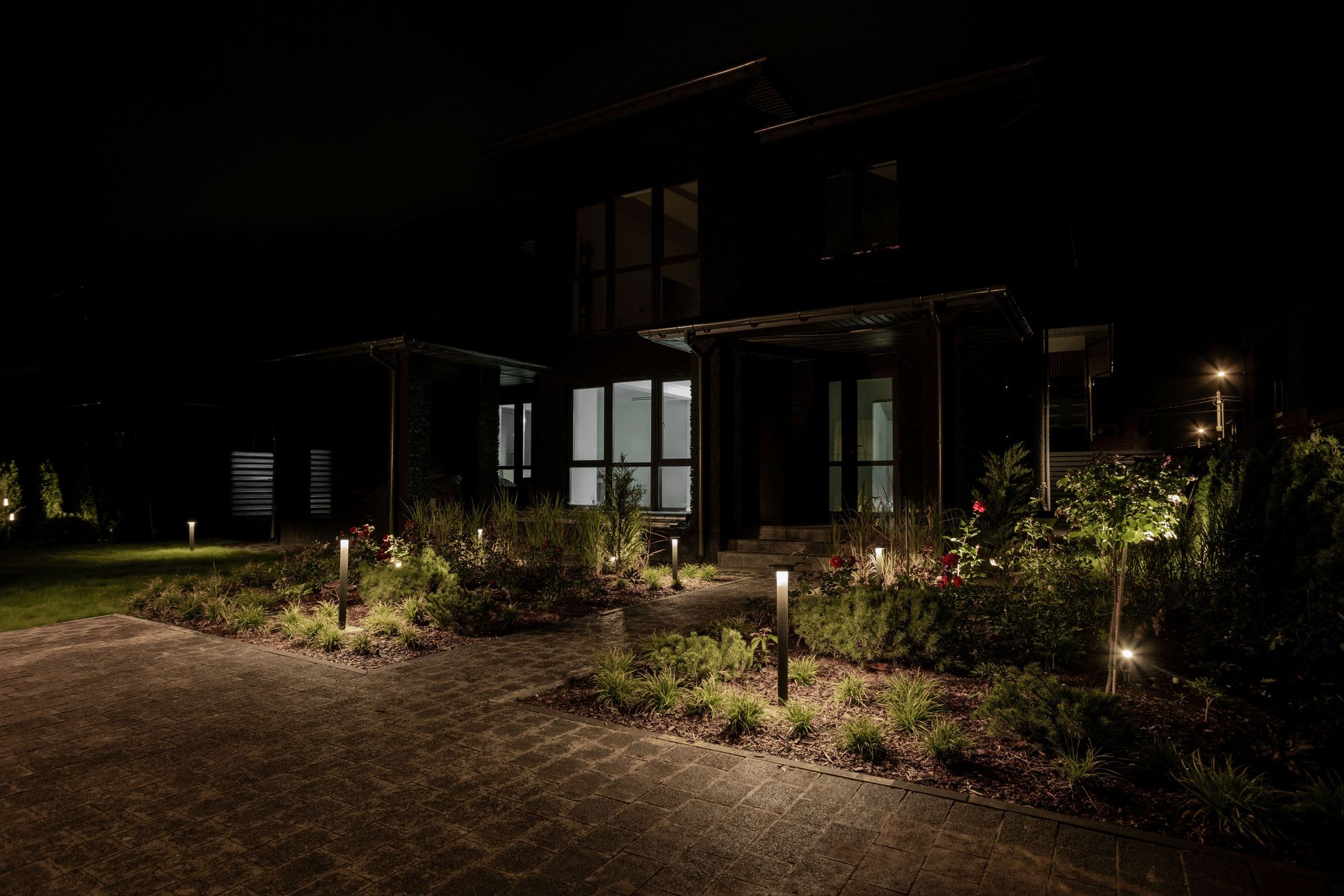 Рабочий слой освещения на участке помогает припарковать машину, безопасно пройти по участку и не получить травму. Он также выполнен при помощи светильников SWAMP-BOLL, расставленных по периметру освещаемой площадки.