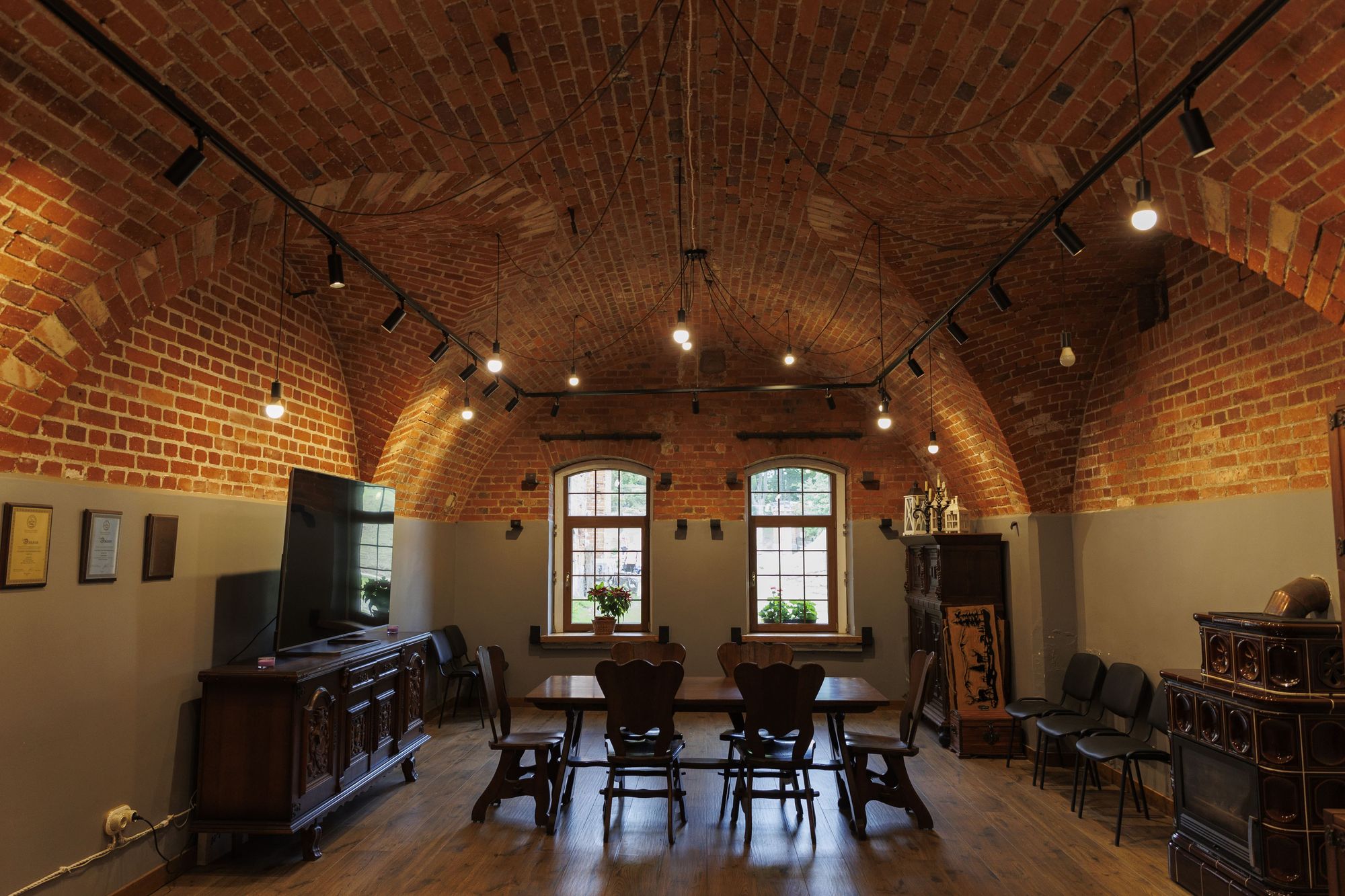 Сводчатые потолки и стены из красного кирпича до сих пор хранят атмосферу прошлого. Чтобы ничто не мешало посетителям форта проникнуться исторической обстановкой, освещение в музее лаконично и при этом функционально.