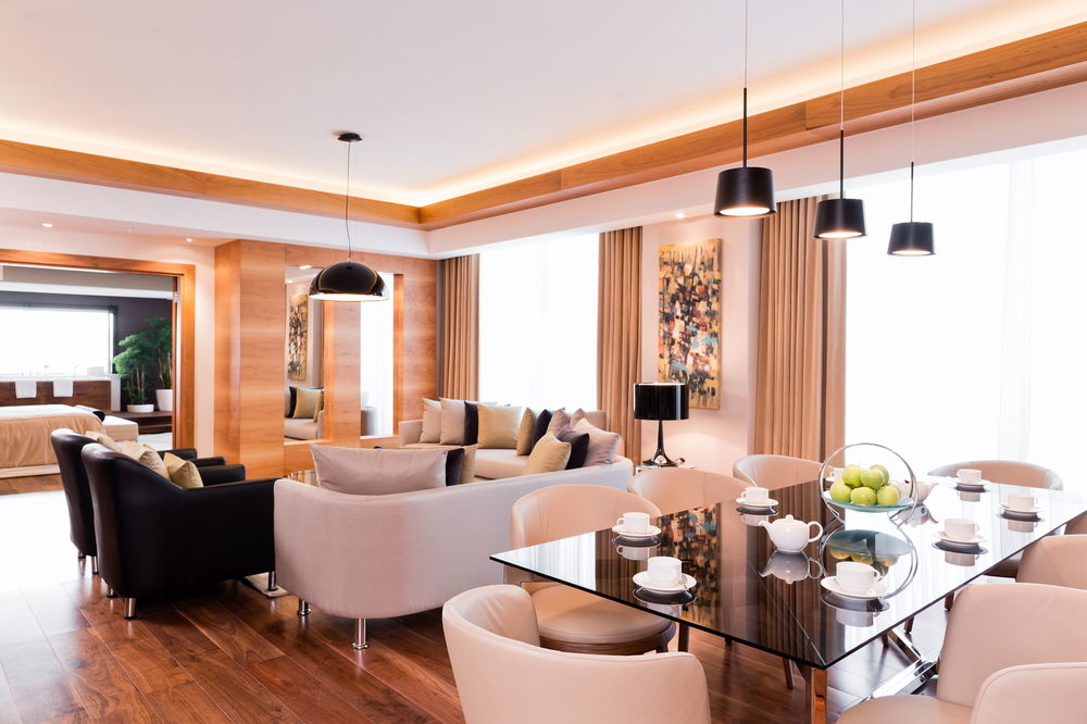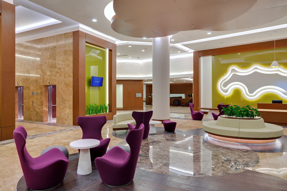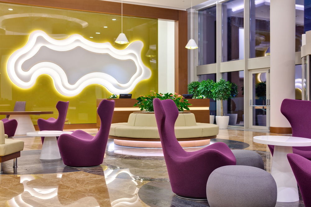 В основе проекта освещения премиального отеля — богатые интерьеры с многообразием цветовых оттенков. Декоративная подсветка и основное освещение в холле, ресторане и номерах созданы с помощью лент классического белого свечения, которые наполняют пространство приятным теплым светом. Для бара и SPA-зоны были выбраны многоцветные ленты, которыми можно управлять с помощью контроллеров и пультов. Во влажных помещениях используются герметичные RGB-ленты с высокой степенью пылевлагозащиты.