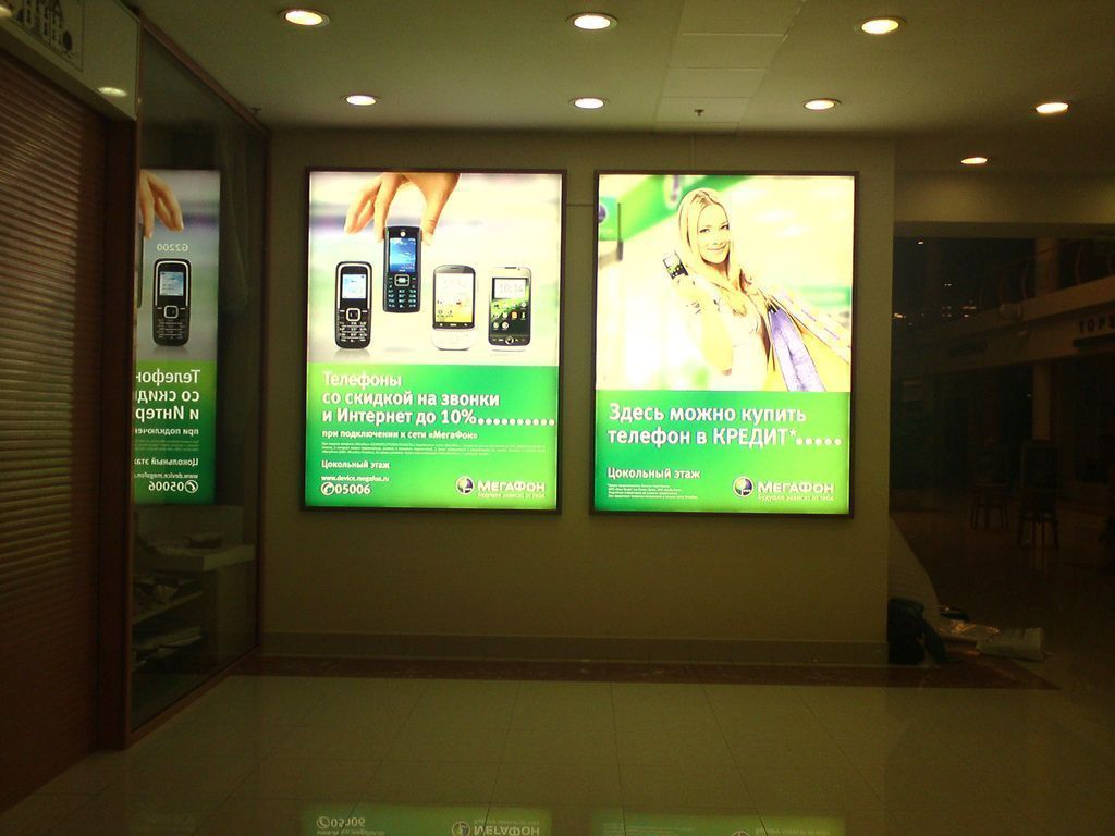 Вывески, информационные указатели и рекламные световые панели со светодиодной подсветкой для оформления торговых центров в Москве. Для подсветки применялось светодиодное оборудование торговой марки arlight®.