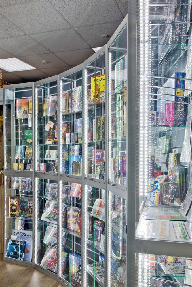 Подсветка стеклянных витрин магазина настольных игр в торговом центре на основе светодиодного оборудования торговой марки arlight®.